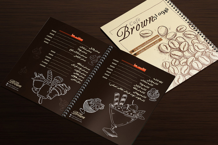 طراحی منو و کارت ویزیت کافه براون اصفهان