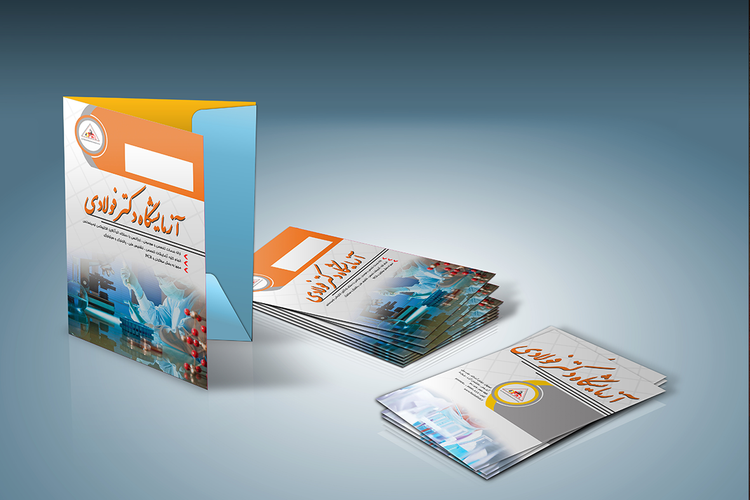 طراحی فولدر و برگه جواب آزمایش و 11 عدد بروشورهای سازمانیشان با طراحی یک قالب مجزا