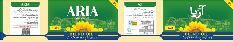طراحی/ لیبل/ روغن/ 5لیتری/ آریا/ (مایع مخلوط و سرخ کم جذب)